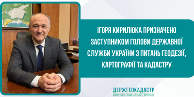 Ігоря Кирилюка призначено заступником Голови Державної служби України з питань геодезії, картографії та кадастру